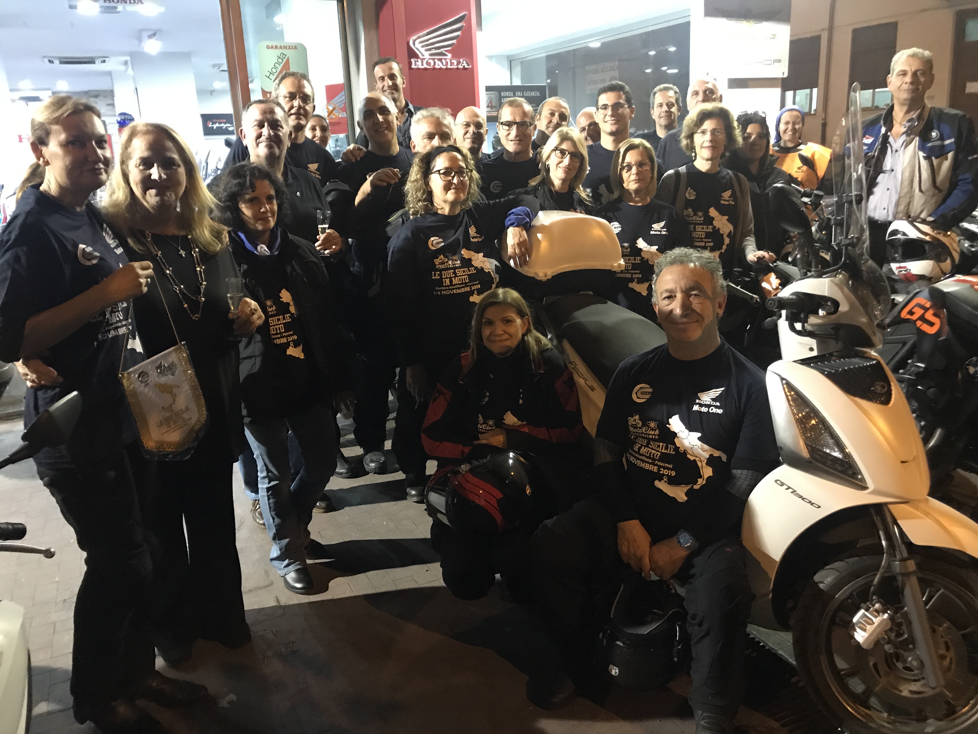 Tutto è iniziato Giovedì 31 Ottobre 2019 alle ore 17,30 presso la concessionaria Moto One Honda Palermo dove, insieme agli appassionati titolari, Gaetano Nelli e Pippo Piazza, abbiamo brindato alla buona riuscita dell’evento stappando tre bottiglie di buon prosecco...
