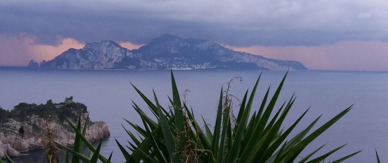 salutiamo l’amico Mimmo “Lo Stuzzichino” e facciamo strada per l’albergo a Sant’Agnello. Prima, però, percorrendo la strada denominata “Nastro d’Oro” ci fermiamo su un ponte di passaggio a Massa Lubrense dove ammiriamo, nel punto a lei più vicino, l’Isola di Capri nel suo intero fascino