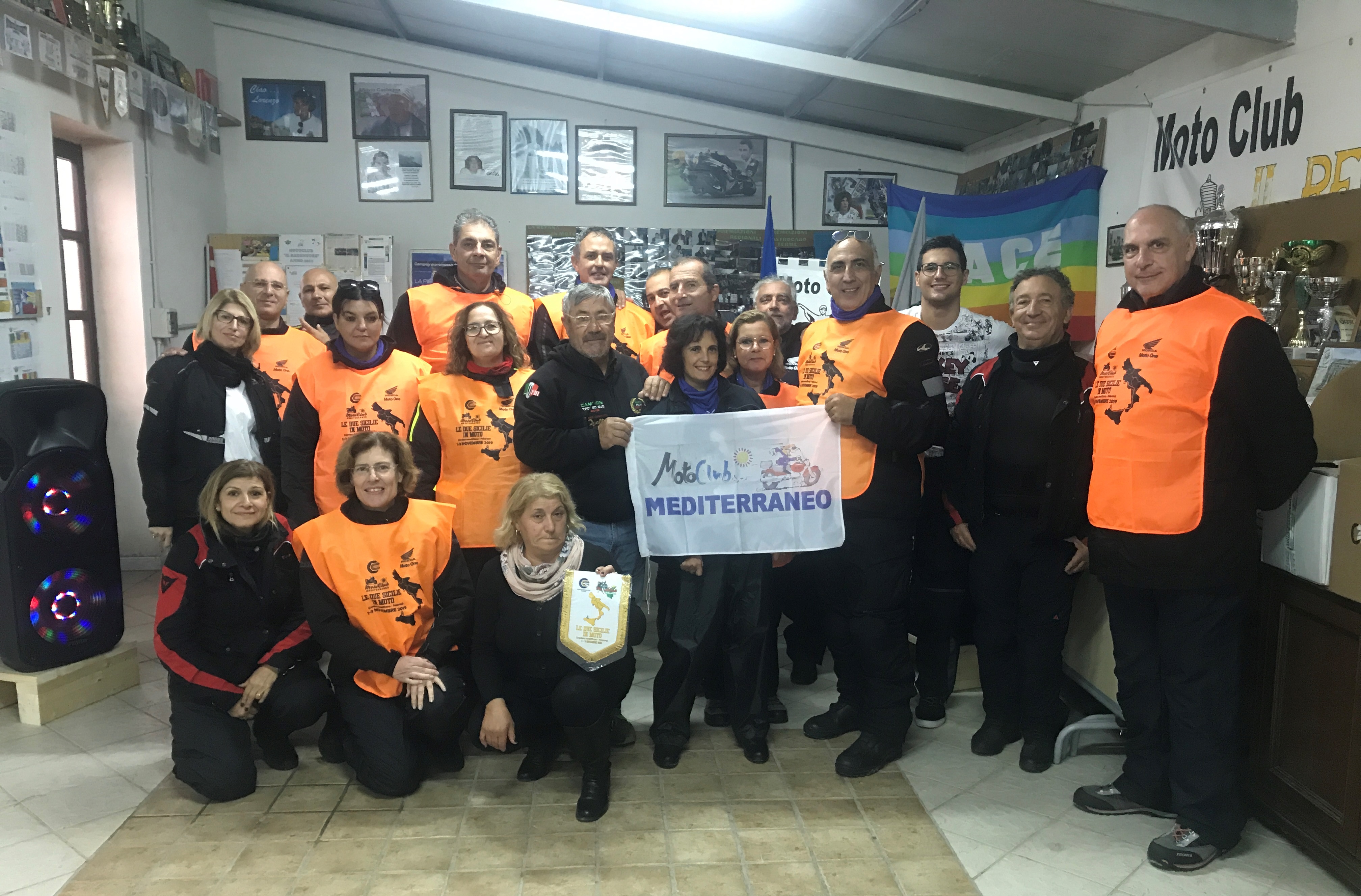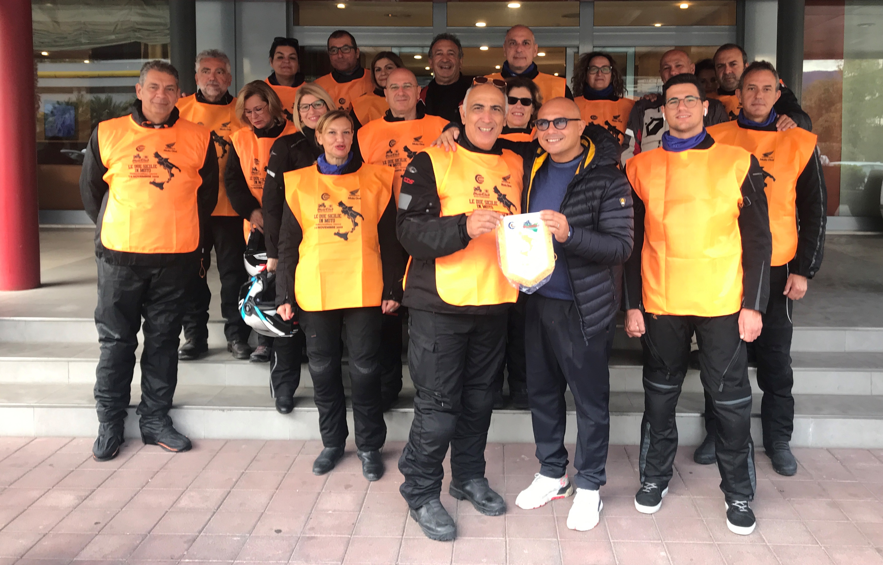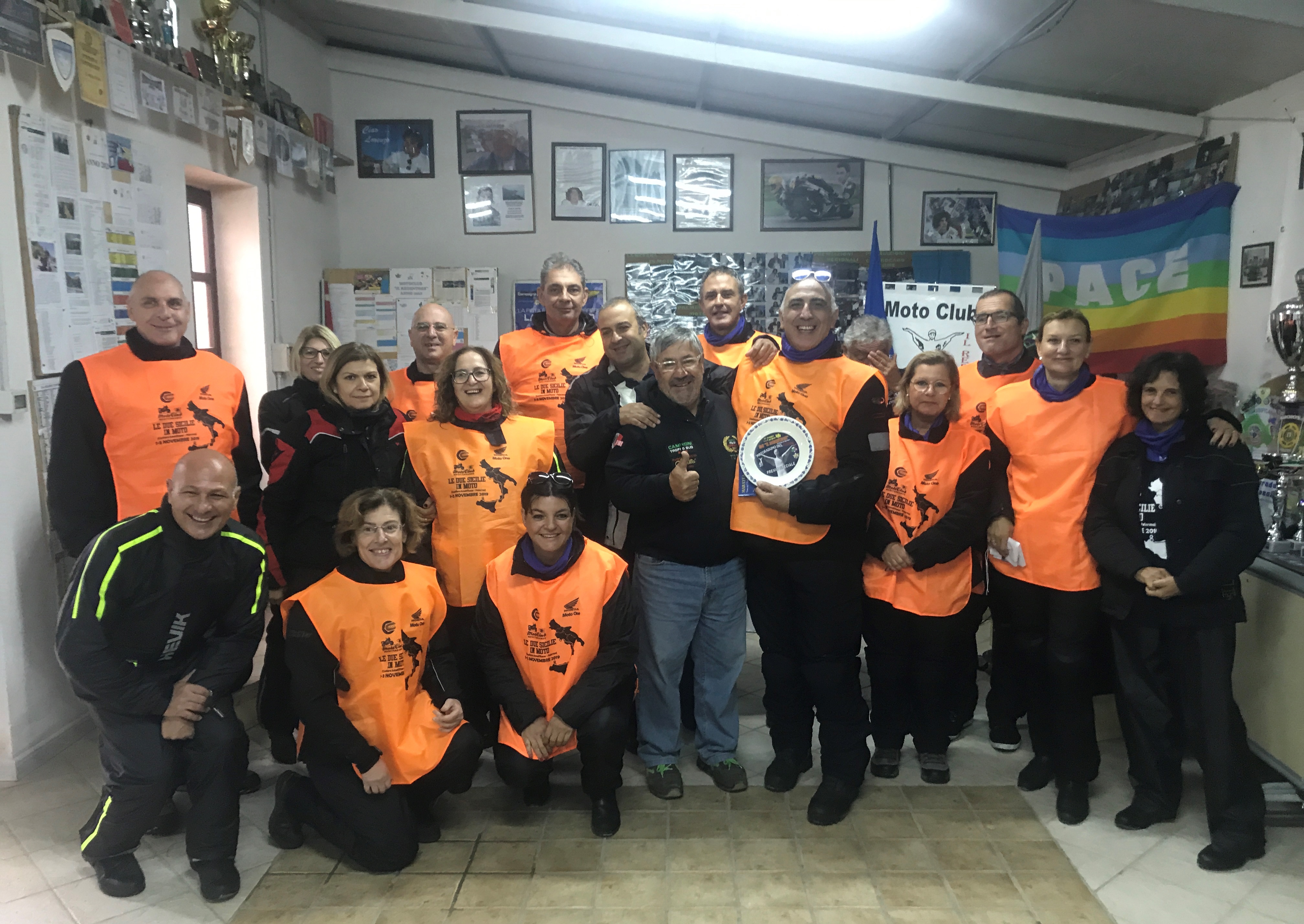 Prezioso come sempre l’apporto di Moto One Palermo Honda che ci ha permesso di consegnare una bella t-shirt serigrafata a ogni partecipante e delle casacchine che sono diventate una serpentina arancione sulle strade del sud Italia.